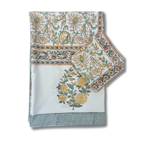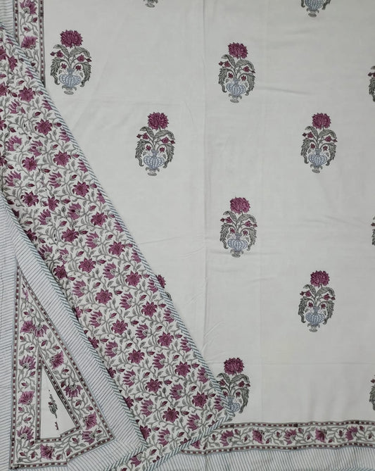 Jannat-Hand Block Printed Bedsheet with 2 Pillow covers