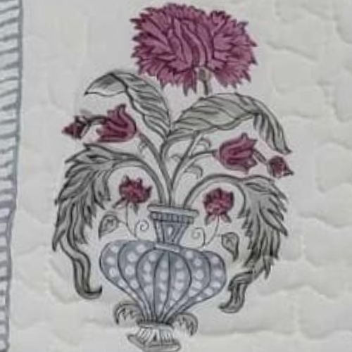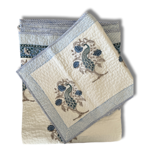 Reversible Blanket with 2 Pillow Case- Hand Block Printed (Mor)