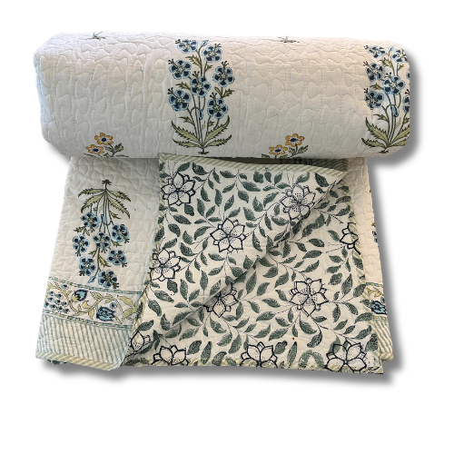 Reversible Blanket with 2 Pillow Case- Hand Block Printed (Bagh)
