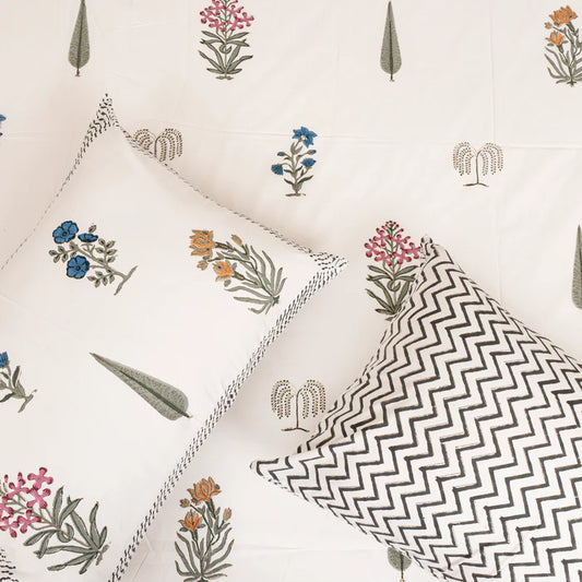 Summer Garden-Hand Block Printed Bedsheet with 2 Pillow covers