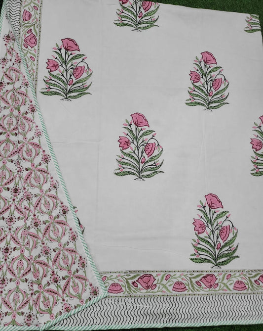 Summer Garden Reversible Summer Blanket ( Dohar) Hand Block Printed
